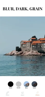 In A&D app you can add grain, dust, blur and dark effects to your photos. Create your own atmosphere on your photos and videos! Live in color!