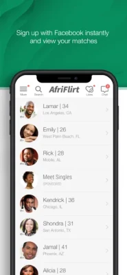Afriflirt is the fastest way to meet black singles near you. Go from sign up... to real dates within seconds. You can then start meeting new people immediately!
