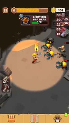 Hello there, adventurer! Ready to explore ancient tombs and discover hidden treasures in this idle strategy game? Then grab your pickaxe, torch, and weapon, and start collecting materials, fighting scarabs, and exploring a vast network of dungeons filled with danger and loot. This adventure game blends RPG-style character building with survival elements as you face waves of desert creatures.
