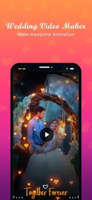 With this Marriage video creation application from Marriage photos and music, you can easily create Marriage videos, edit Marriage videos from your own photo gallery.