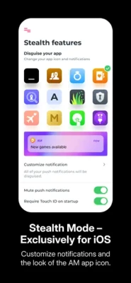 - Stealth Mode exclusively for iOS Members lets you customize the AM app icon and notifications.