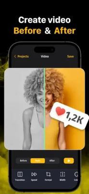 Select two photos and customize animation. The app also offers a variety of templates that are constantly updated. You can customize animation speed, direction, color and line thickness, and select the video format and duration. These advanced features to help you create truly unique and professional-looking Before & After videos. With the ability to set the transition type, divider size and color, and number of repeats, you can create videos that truly stand out and capture your audience's attention