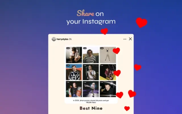 Generate a collage of your 9 best Instagram moments of 2024 with photos, videos, and reels using the Best Nine app and share them with your followers.