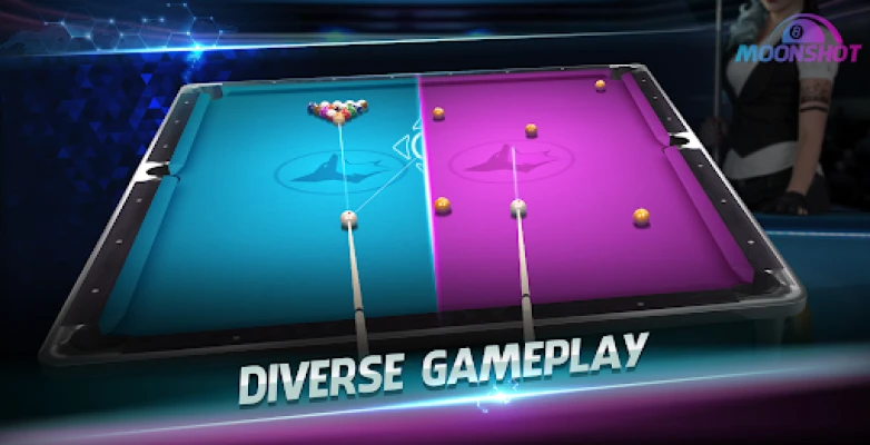 Which pool game rule are you into? Fierce PvP rivalry in 8-ball (8 ball pool) mode or design your strategy to escape tough positions in Trickshot mode. We have it all here, in Billiards 3D: Moonshot