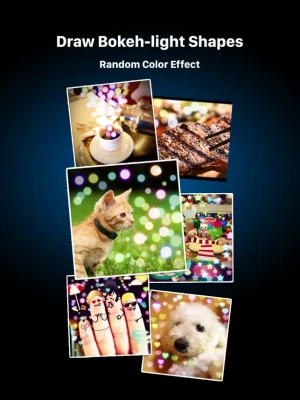 Features: BOKEH-LIGHT EDITOR - Many different shapes to choose from. - Heart, light, star, snow, leave, and more. RANDOM COLOR EFFECT - Add random colors of bokeh light to your photo by just tapping. SIZE & OPACITY - Adjust the size or opacity in realtime. PHOTO TUNING - Advance tools you need for photo tuning. - Brightness, Contrast, Highlight, Shadows, blur, and etc. SAVE & SHARE - High quality output. - Share to Instagram. - Open in other apps.