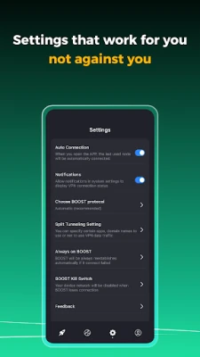 Protecting your privacy is our top priority. BOOST VPN encrypts your traffic and prevents malicious actors, ISPs, or trackers from accessing your personal information. With our secure VPN technology, you can explore the web freely and confidently, enjoying every online moment with peace of mind.