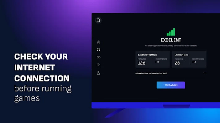 For the best gaming experience on your Android TV, we recommend you to use a 5GHz Wi-Fi or Ethernet connection with at least 25 Mbps connection speed. When using a Wi-Fi, make sure you don't have lots of devices connected to it at the same time.
