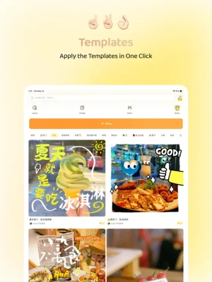 ButterCam comes with a vast collection of templates for posters, portraits, food,scenery, festivals, cute pets, babies... With just one click, you can apply them and eliminate the hassle of design and layout.