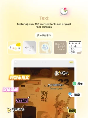 Original fonts such as “Huangyou Tangxin Font” and “Huangyou Shisan Font ” are only available on ButterCam. With over a hundred licensed fonts ranging from cute to minimalist style, covering Chinese,English,Japanese, and Korean. Each font is carefully selected by professional designers . There are also various text templates styles suitable for different Vlog and Plog scenarios.