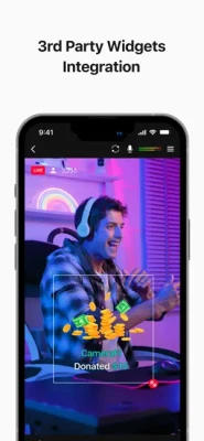 You can connect live-streaming donation/subscription alert platforms such as Streamlabs by web source overlay. Monetize your live broadcast.