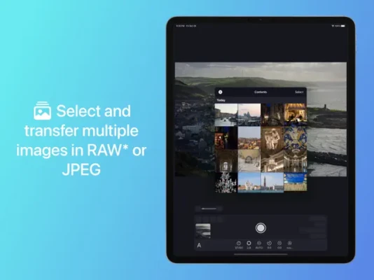 • Easy transfer of full-resolution RAW* files (or JPEG... or both!) from your supported camera.