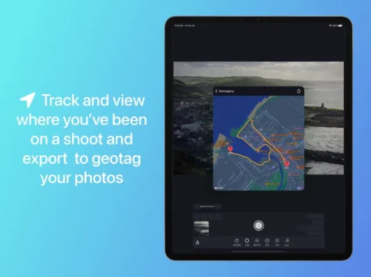 • Intuitive UI for capturing geotagging tracks via GPX for import to Lightroom or other editing software**.