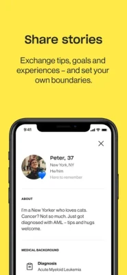 • Patients – Bond with people as you navigate treatment together. • Survivors - Get support people for life changes and mentor others in treatment. • Caregivers - Find practical assistance and emotional support to rise to daily challenges.