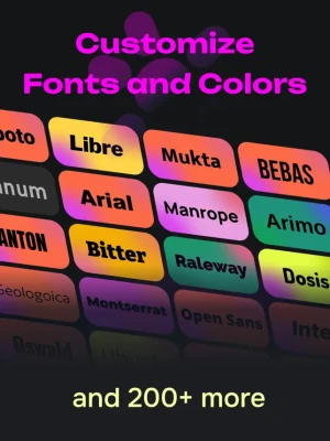 Subtitles: Captions For Video allows you to customize captions to your liking. Choose fonts, colors, corner radius, background, padding, and more. Merge captions based on word count.