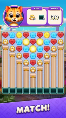 Welcome to Cat Crunch, an exciting match-3 puzzle adventure! Join Liv & Clara as they renovate their home and town. Swipe through colorful challenges, solve engaging puzzles, and embark on a thrilling adventure that awaits you!