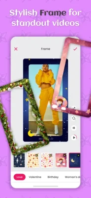 * Explore a wide range of beautiful frames to make your videos more engaging.