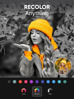 • Recolor Tool: Experiment with hair and eye colors – go from brunette to purple, or switch your eye color to blue or green effortlessly.