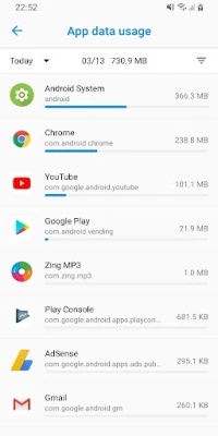 FEATURES * Notification display mobile and WiFi data on notification. * Data tracker display daily data of each app when you open it. * Data warning show warning if the data usage over limit number you set. * App data usage display data for apps for a period of time.