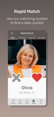 - Rapid Match: Are you in a rush and only want to look at photos? Decide which singles you like here instantly by swiping right or left