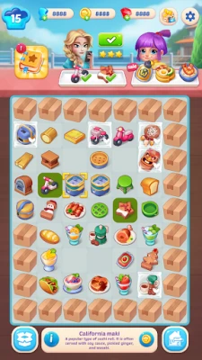 ↪ Merge Ingredients: Combine ingredients to create new dishes. Match three or more identical items to combine them into a higher-level item. Keep merging to discover new recipes and unlock special dishes.