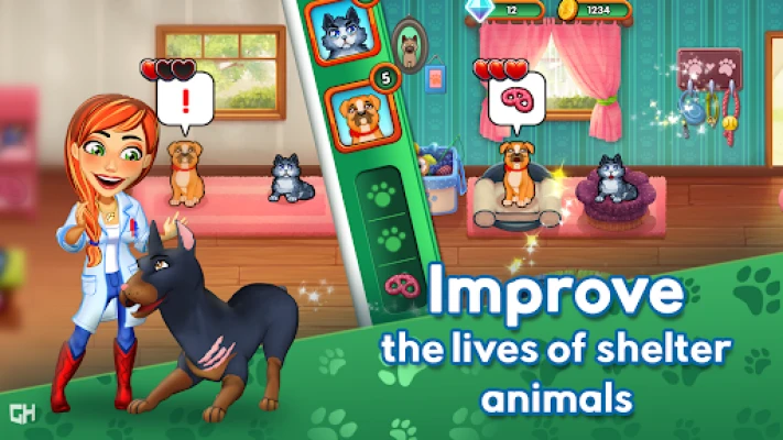 🐾 Collect diamonds to rescue adorable puppies and kitties, and care for them in your animal shelter