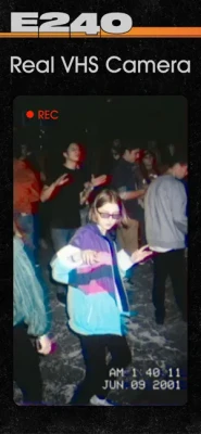 E240 is a realistic VHS camera. The main difference from other VHS camera apps is the filter itself: E240 not just simulates the effect, but actually films with the same principles as real VHS cameras did!