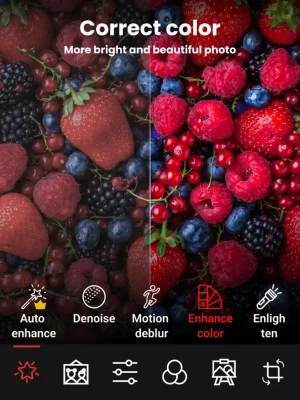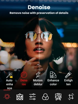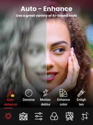 "Enhance it" is a powerful photo editor that goes far beyond conventional editors to fix and improve your pictures as much as possible. Apart from conventional image retouching tools, this app uses artificial intelligence to automatically fix defects in photos, restore them and boost their quality. A great variety of AI-based tools is available for any specific problem that you may need to fix.