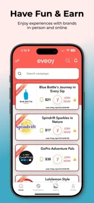 1) Advocate for Brands You Love: With the eveoy app, dive into brand events that aren’t just engaging; they're rewarding too! Advocate for your favorite brands, participate in fun activities, and earn rewards while doing what you love.