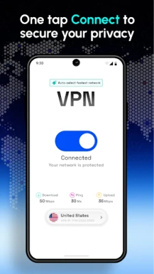 • Simple One-Tap Connect for instant VPN activation.