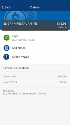 • Keep your transactions organized by allowing you to add tags, notes and photos of receipts and checks