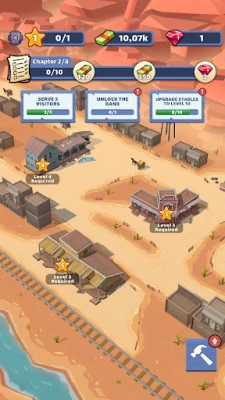 Step into the dusty boots of a pioneer and build your very own Wild West town from the ground up! In Frontier Town: Idle RPG, start with a barren patch of land and transform it into a bustling frontier settlement filled with saloons, banks, general stores, and more. As your town grows, earn money from each building to expand, upgrade, and hire new personnel, turning your settlement into the most prosperous town in the West!