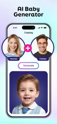 Introducing an amazing Cosplay AI Baby Generator- Future Face Maker, future baby face generator and baby maker app, fun kid generator! This cool baby predictor app and future baby generator helps you to find out if you wonder about your future child maker! If you wonder your future child generator then this cool Cosplay AI Baby Generator - Face Maker and baby prediction app is here for you!
