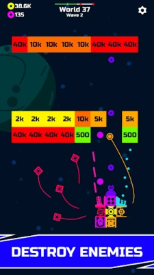 ✔️ Collect coins and resources by destroying ships and alien blocks.