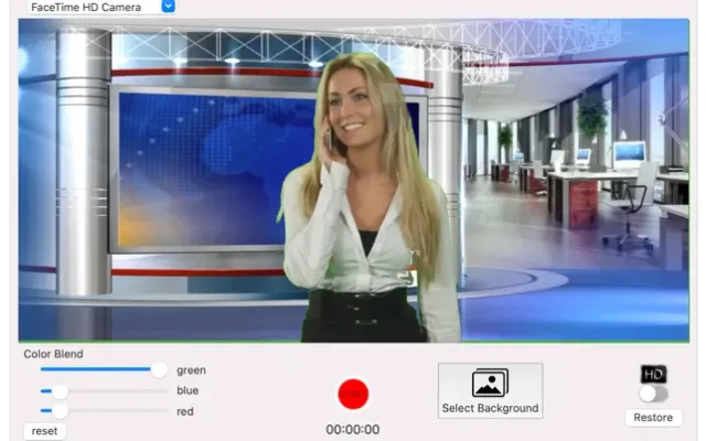 Recording your own videos using any background has never been so easy! *** Over 10 million users! ***With Green Screen Live Recording app, you can record yourself using the front camera or the back camera and change the background behind you.Select any of thousands of background sets that come with this app, professional scene settings such as work offices, sky, outdoor. You also can choose between animated scenes with busy employees in it, which is perfect to give a professional look to your video and add weight to what you have to say.