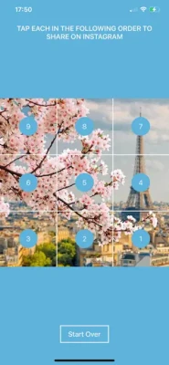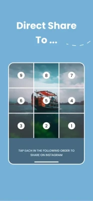 Take a new picture right from within the app or upload an existing one from your Library and let Grids crop the image for you! All you have to do is to submit the resulting pics to your Instagram in the order suggested by the app. You don't even have to save the tiles to your device as sharing to Instagram is embedded in the application!