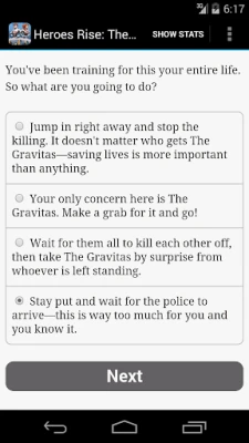 "Heroes Rise: The Prodigy" is an interactive novel where you control the main character. In each chapter, your choices determine how the story proceeds.