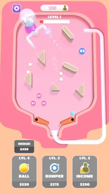 Buy new balls, make money on each hit! Merge the balls and make more money, buy bumpers and unlock new features. Try to reach to the next level by hitting on the walls!