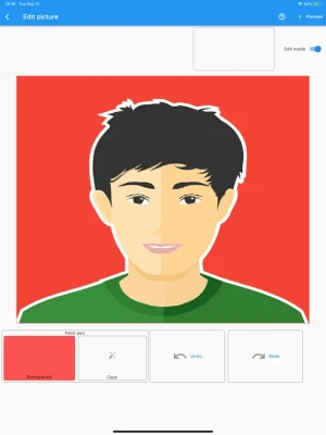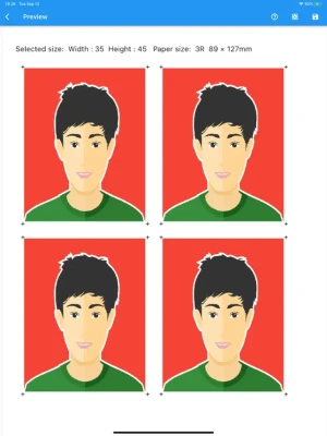 Just only 4 steps to get an ID photo. 1 Take photo by camera, 2 Change the background color, 3 Preview and save the picture, 4 Print the picture from Photos.