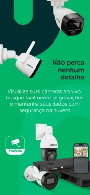 Compatível com câmeras DVR, NVR e IP da marca Intelbras.