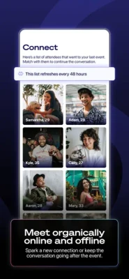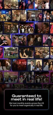 Our goal is to provide the best online and offline dating experience, that's why we host a variety of events in 30 cities across the US every month and our app is your ultimate companion to make it happen. We're constantly expanding to add more cities and different event styles, giving you the freedom to choose what works best for you.