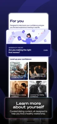 Jigsaw Dating understands that meeting in person can sometimes feel a bit daunting. That's why Jigsaw Dating has designed tailored in-app sessions just for you. Starting with an introductory session designed to understand where you are in your dating journey, Jigsaw Dating customizes your experience and supports you in reaching your dating goals. Members get more with curated dating sessions, content, and coaching tips, all designed to help you boost your confidence and find a healthy relationship.