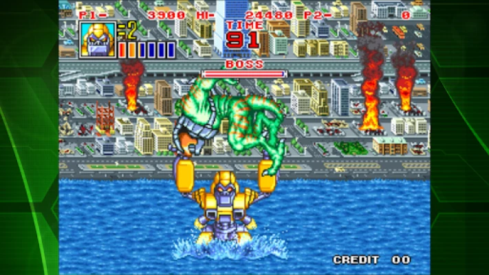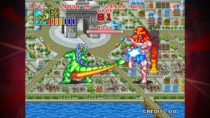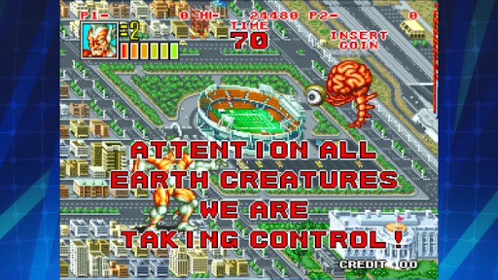 [Game introduction] KING OF THE MONSTERS 2 is an action game released by SNK in 1992. Choose 1 of 3 monsters to thrash aliens around the world and become the undisputed King of the Monsters! Work together in a 2 player co-op mode, or duke it out in versus mode!
