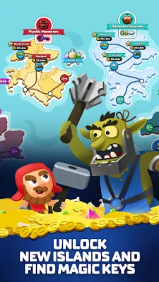 Dark dungeons, evil enemies, and unique troops await you in your medieval realm! Plan a unique battle strategy, fight in an idle war, defend your castle, and defeat bosses. Unlock all the islands, from Green Goblins to Venomous Vampires, and locate the six magic keys in the game.