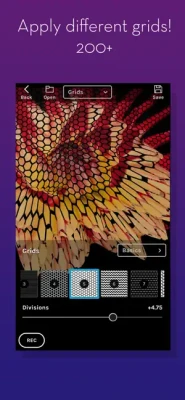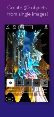 The app comes with 200 grid presets that you can apply to your objects, and offers a variety of adjustments for maximum creativity. You can control the divisions and intensity of each grid, blend your own images, set the background image, and control the transparency of your objects. Once you've created your 3D objects, you can record their movement and apply effects to your video.