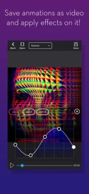 Our app also offers more than 50 effects that you can control with curves of values vs time.