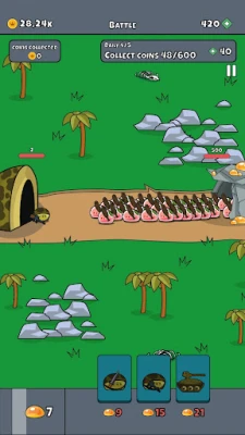 Use food to gather units and defeat your enemies in battle! Evolve throughout time! Send cavemen into battle in the stone age, knights in the middle ages, and soldiers in the modern age! Conquer the battles and become the greatest general the world has ever known!