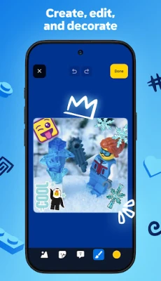 • Use the Creative Canvas to upload photos of your LEGO builds, drawings, and art. Decorate them all with awesome doodles and stickers.