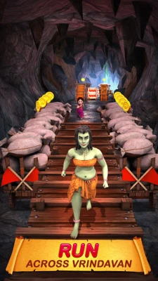 Start following the cute Little Radha while she chases Putana across beautiful temples and picturesque locations of Vrindavan, and brings her to justice for her evil deeds. Enjoy an amazing Gameplay Experience and challenges that this adventurous game has to offer and have lots of fun. Avoid raging bulls, angry elephants, hot lava streams, and more in this endless runner game. Grab Magnets on the run to collect all the nearby coins. Seize all the Shields on your way and run through obstacles. Use Speed Boots to boost up your speed and help Radha narrow down the distance between her and Putana.