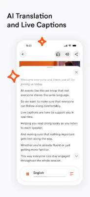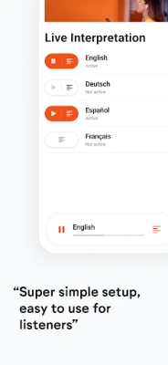 Just enter the invite code provided by the event organizer and listen to the audio channel of your choice.