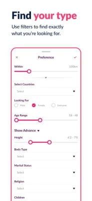 Customizable Search Filters: Use filters like age, location, marital status, religion, sexualities and more to find the perfect match.
